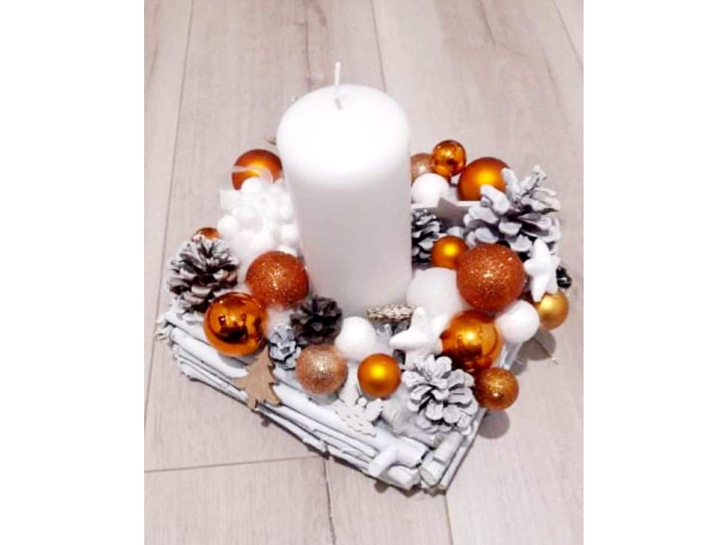 Svietnik 18x18 cm drievka, šišky ošetrené dekoračným bielym resp. bezfarebným lakom.