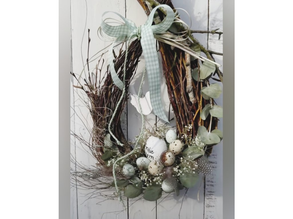 Dekorácia na jarnú výzdobu z prútia, vajíčok, prierok o rozmere 45 - 50 cm