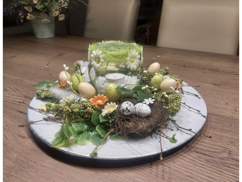 Veľkonočná dekorácia na stôl vo forme svietnika.